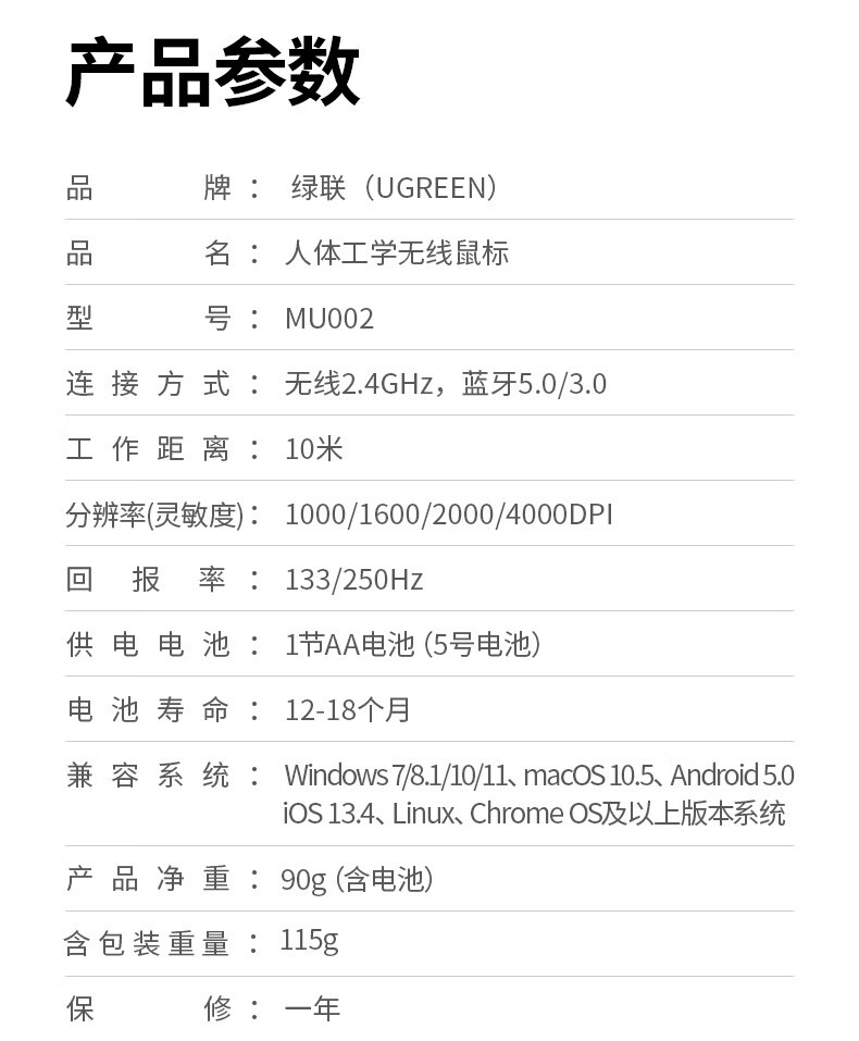 綠聯(lián)(UGREEN)90526鼠標(biāo)...